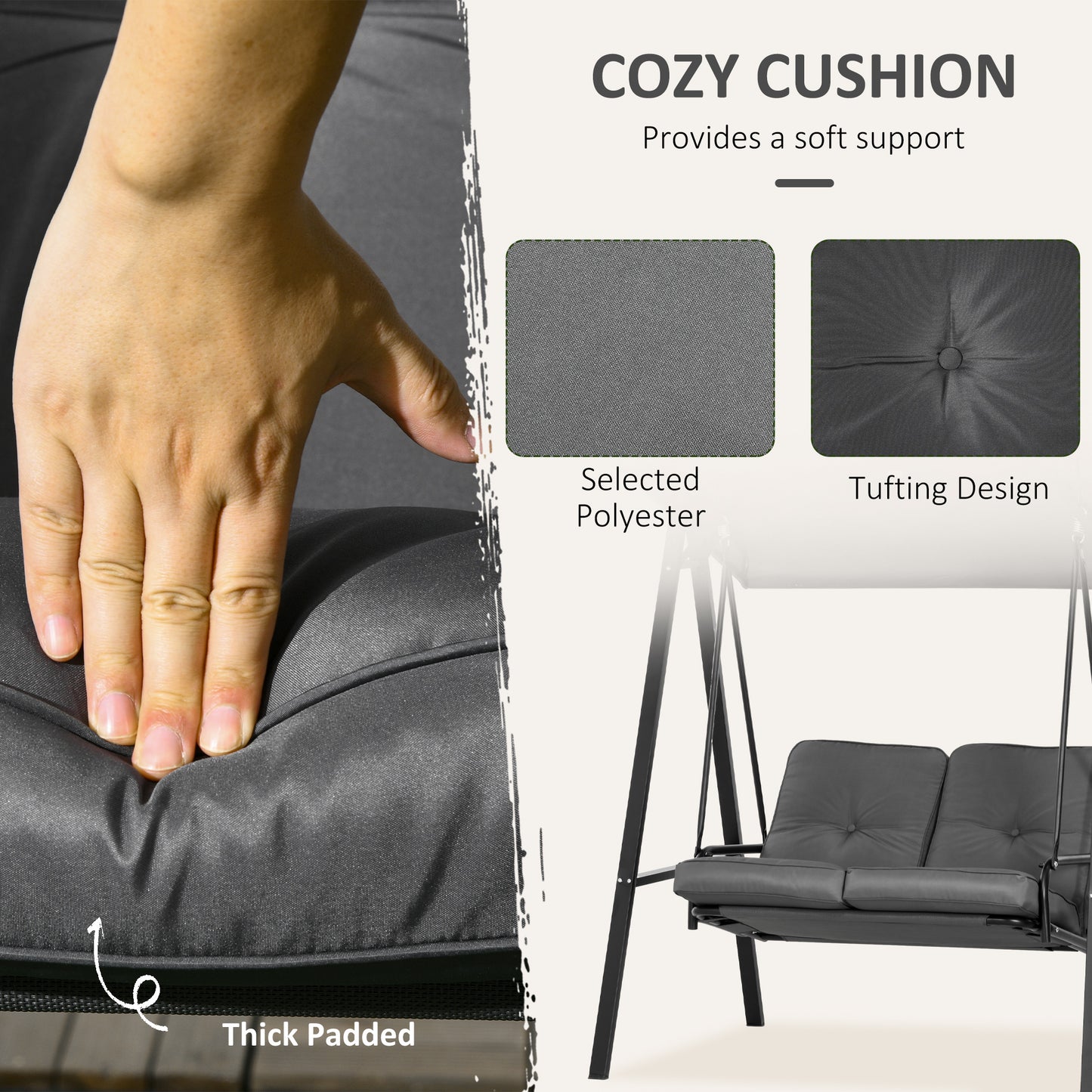 2-Seater Outdoor Porch Swing with Adjustable Canopy, Patio Swing Chair for Garden, Poolside, Backyard, Dark Grey