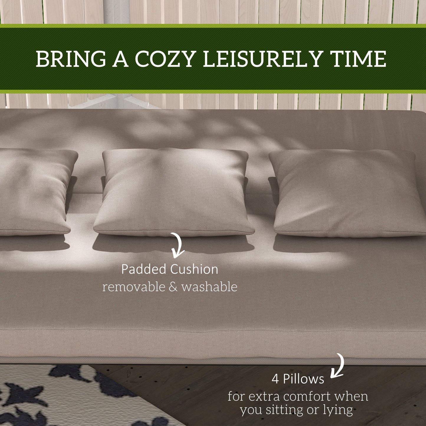 3 Seater Porch Swing Convertible Swing Chair Bed Cushioned Light Brown
