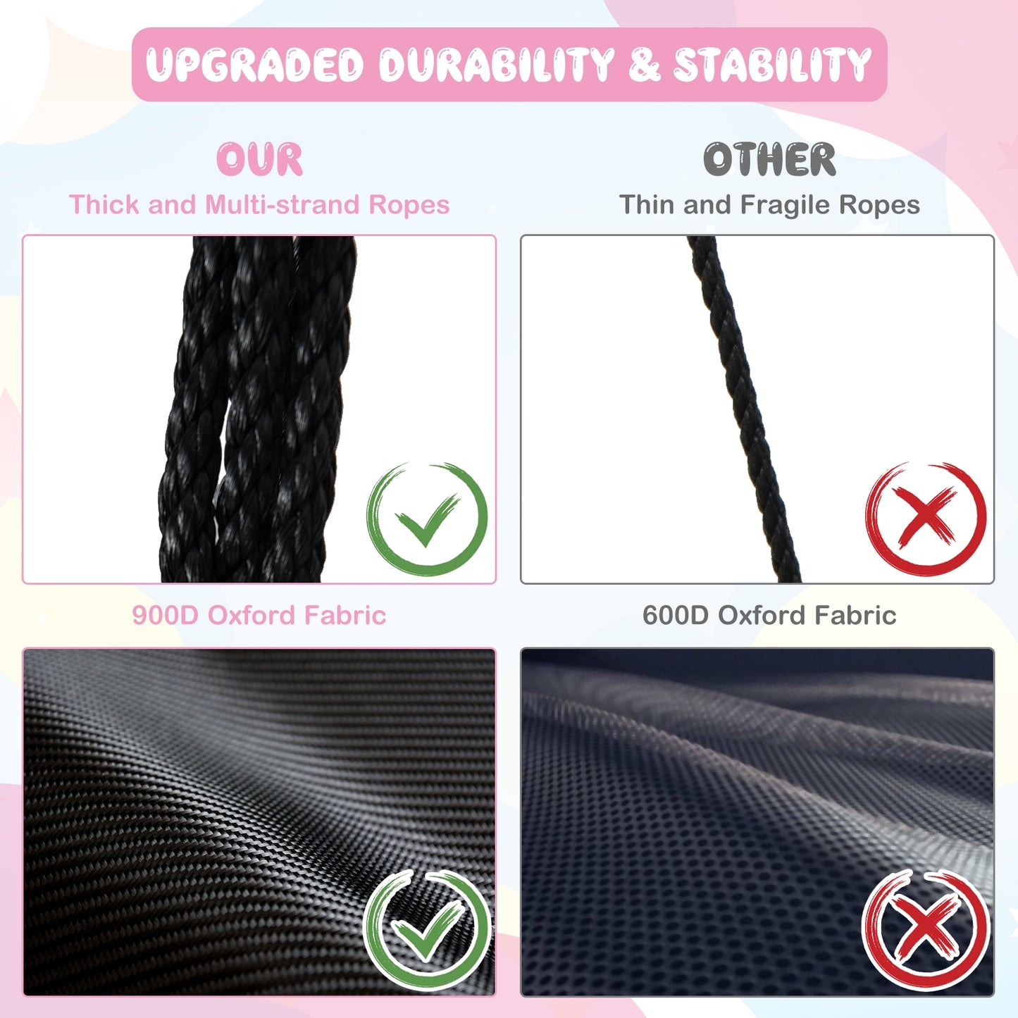 ● Selected Quality Materials: Made of high-quality 900D Oxford fabric and PP mesh fabric this saucer tree swing is built to last. The water tear and resistant Oxford fabric adapts to different weather conditions which is ideal for outdoor use. What's more the rustproof galvanized metal tubes with firm connections ensure safe use.