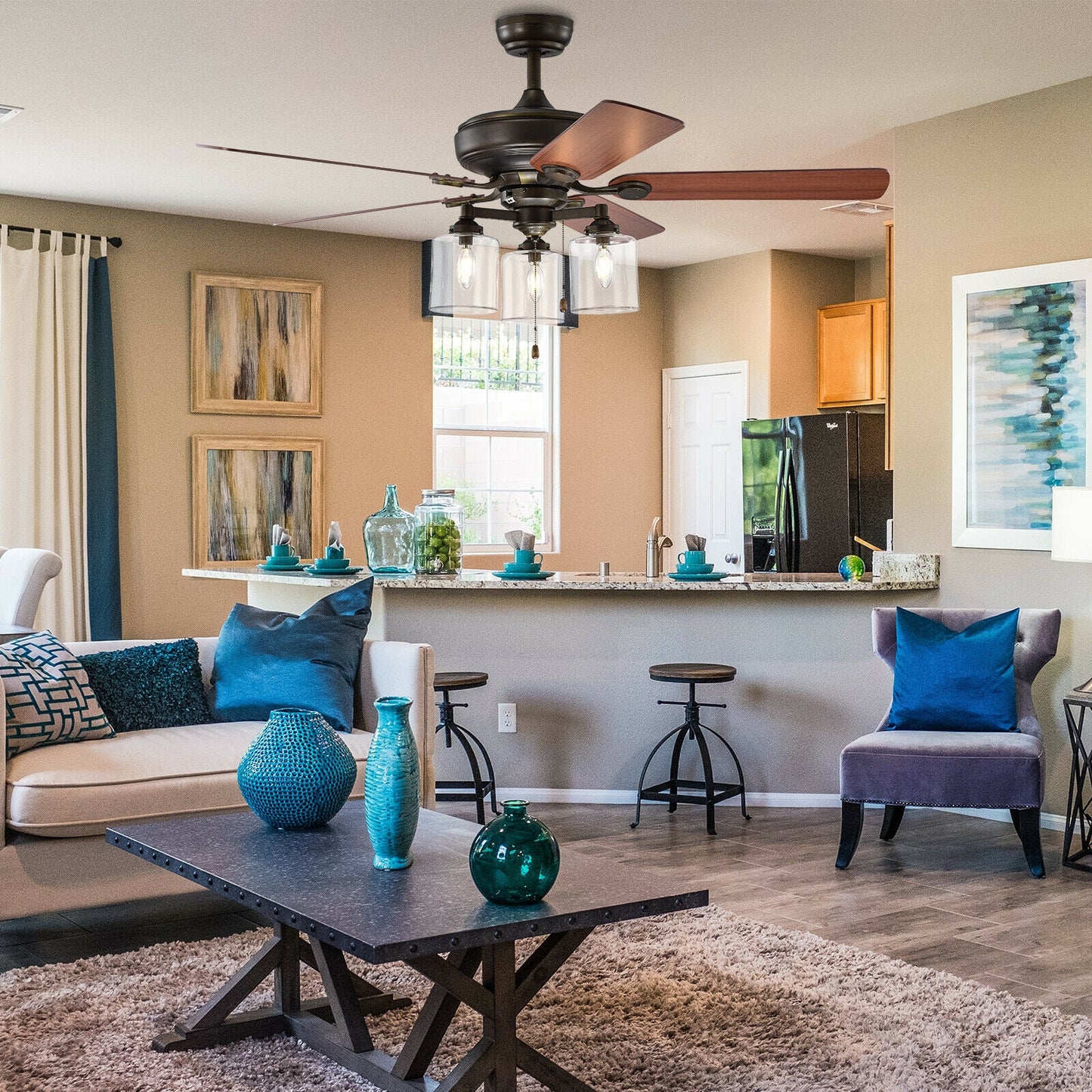 The ceiling fan in bronze is the perfect addition to your room serving up adequate air flow moderate light as well as a fresh take on a classic style.