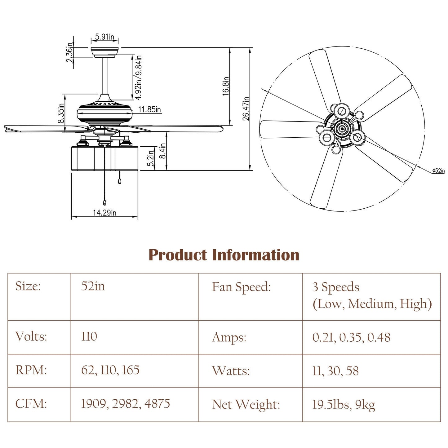 ● 3 Adjustable Speeds and Pull Chain Control: 3 rotating speeds (9w 26w 67w) can be adjusted easily to your needed setting by pulling the chain. The other chain is the light switch which is easy to control. The pulling chains are long enough for you to reach so you don't need to worry about the length.