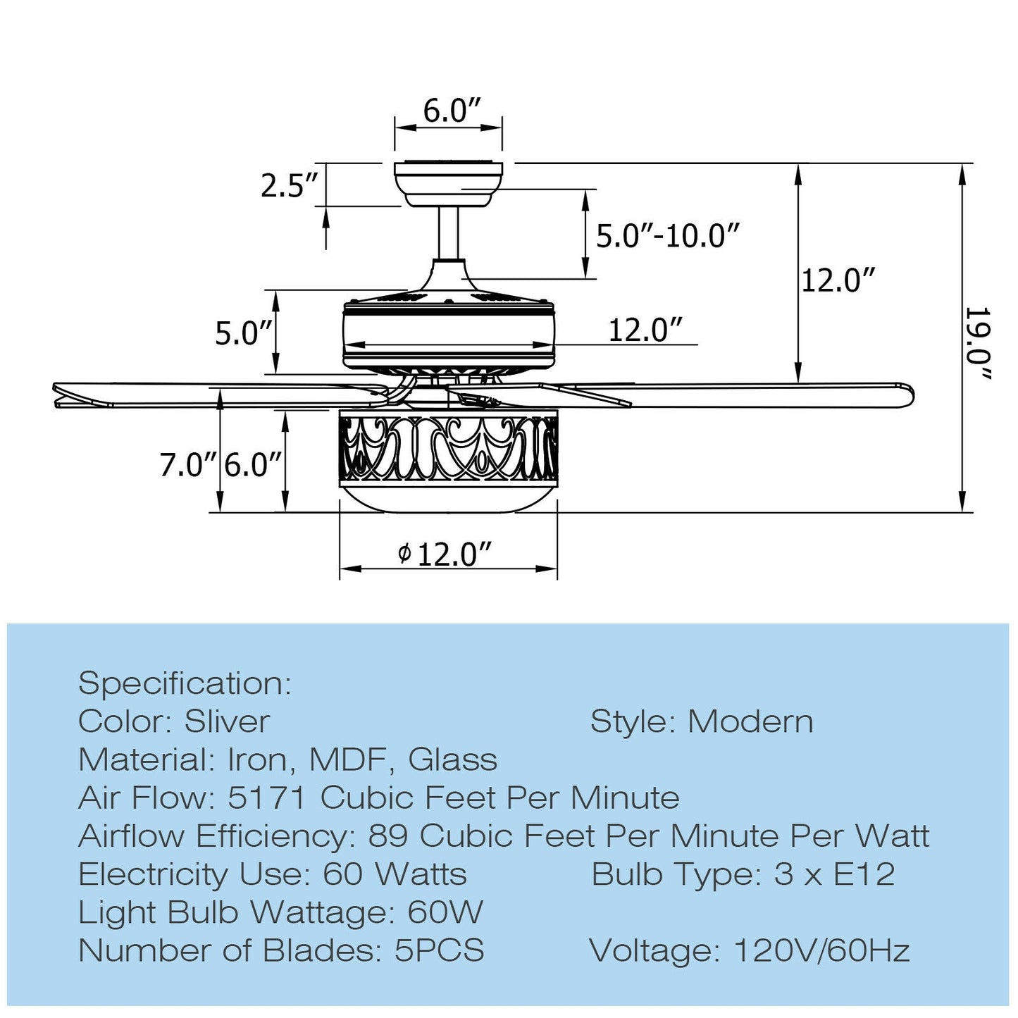 ● Premium Materials: Made of solid iron frame the 5 blades are characterized by great sturdiness and stability thus ensuring your safety when in use. The curved glass lampshade makes the light more natural and softer creating a bright and warm condition for you. Here we recommend you to choose the E12 bulbs (not included) for installation and replacement.