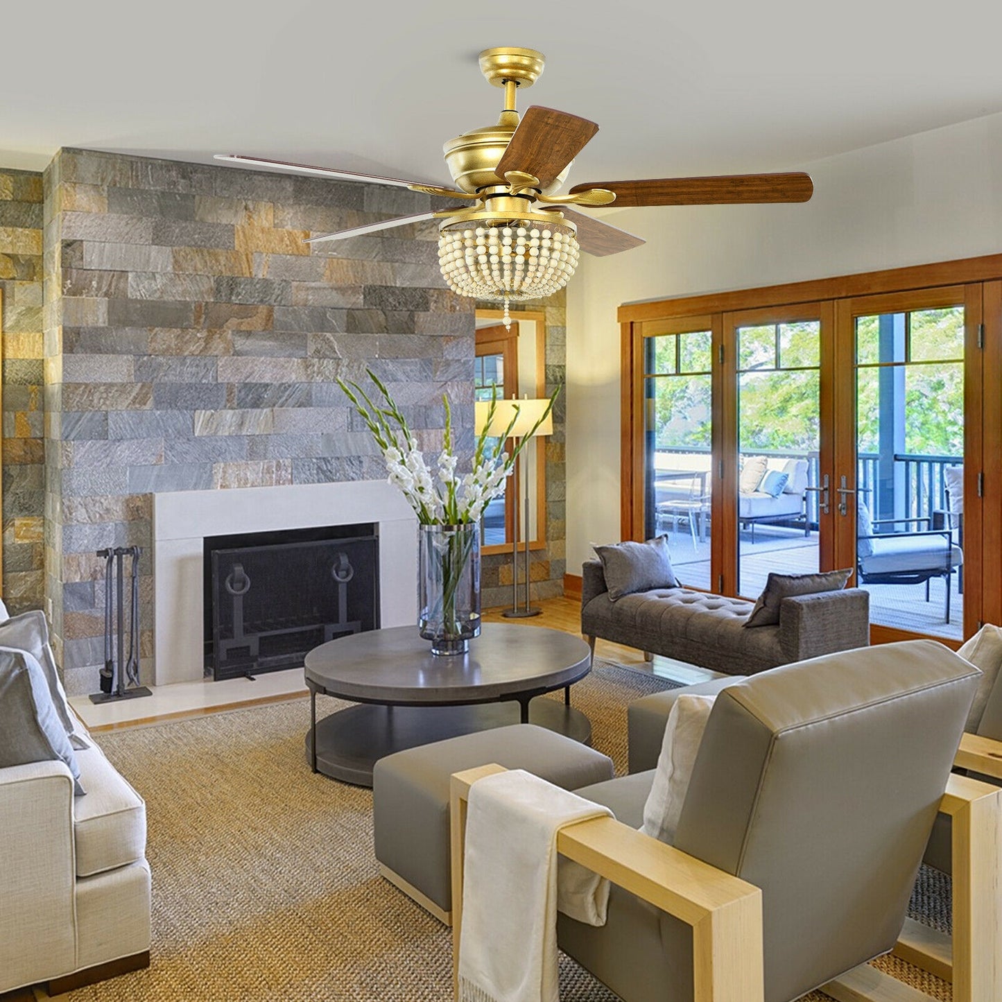 52 Inch Retro Ceiling Fan Light with Reversible Blades Remote Control-Golden