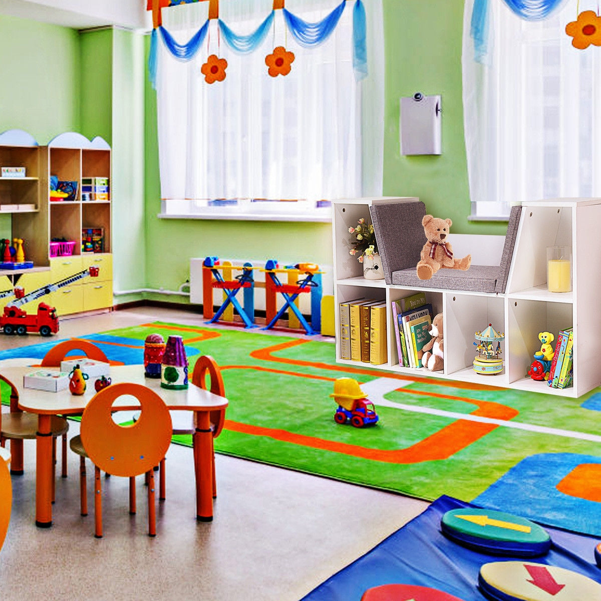 6-Cubby Kid Storage Bookcase Cushioned Reading Nook-White