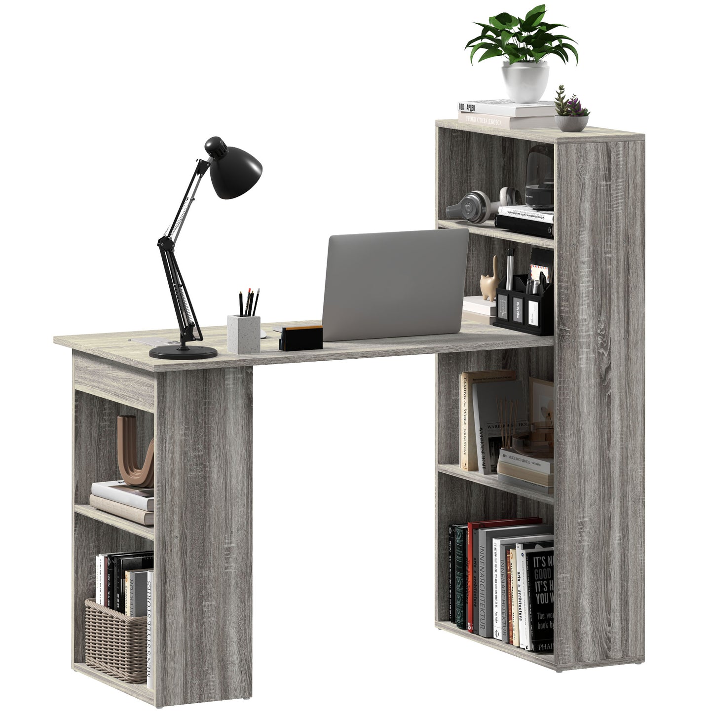 Computer Desk with Storage Bookshelf for Home Office Study Workstation Space Saving Furniture Grey