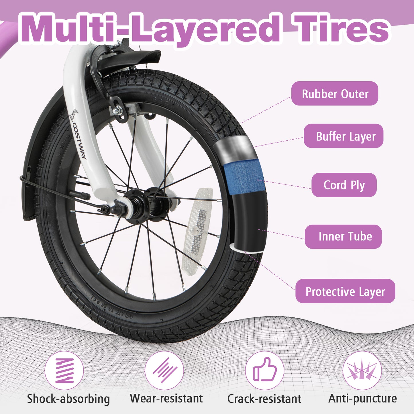● Anti-puncture multi-layered tires can be divided into rubber outer buffer layer cord ply inner tube and protective layer