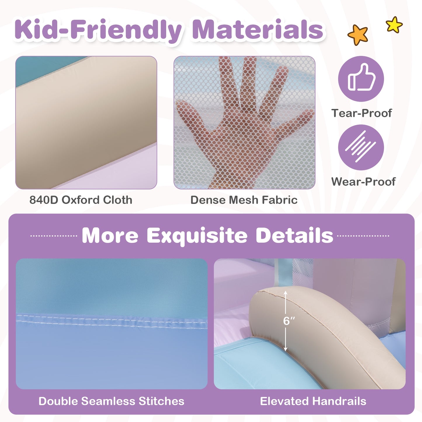 ● Pastel Gift for Kids: Dive into fun with the jump house boasting a delightful macaron theme perfect for any party! Designed specifically for children aged 3-10 the bounce castle ASTM compliant and CPSIA certificated safely supports up to 130 lbs (individual weight limit of 65 lbs).