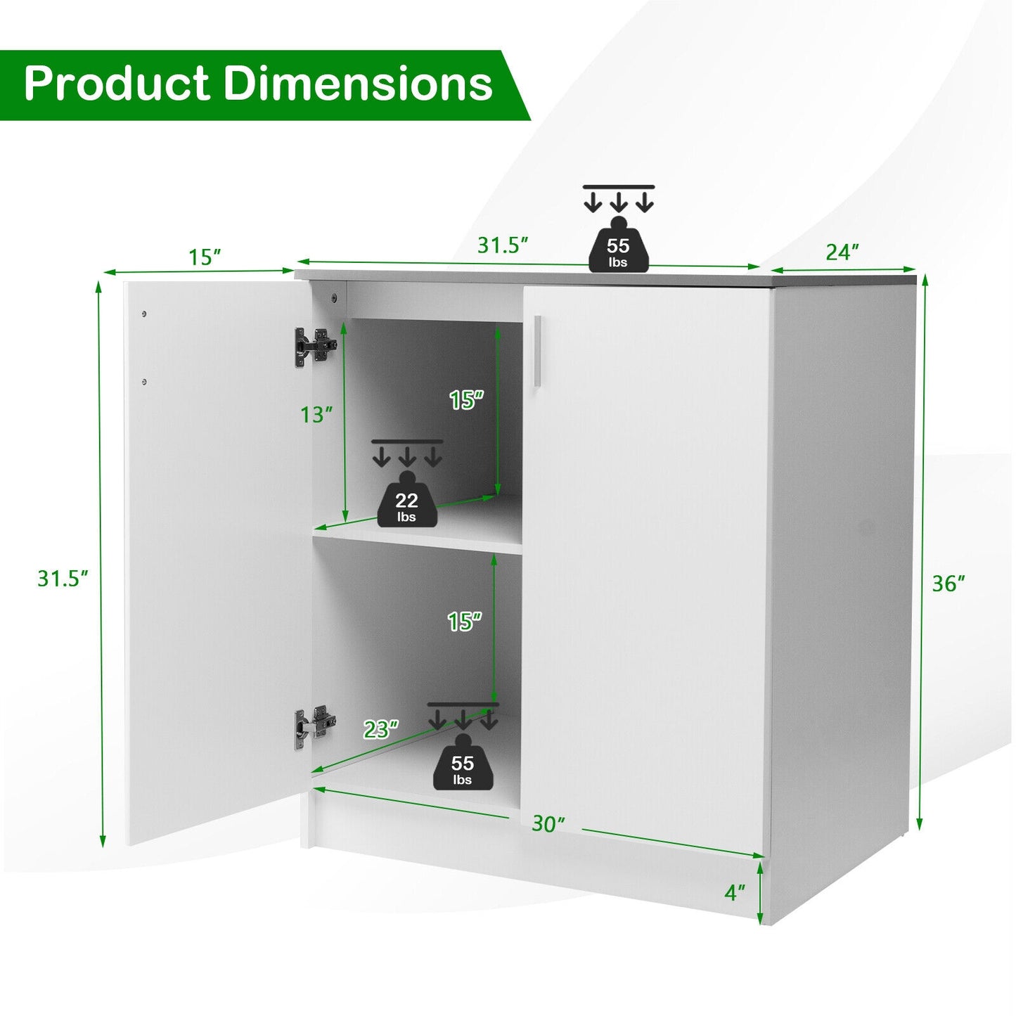 ● Durable and Sturdy Material: High quality MDF board with premium metal hinges is sturdy enough to stand the test of time. In addition supported by a stable base this freestanding storage cabinet promises a long service life and will not wobble or deform easily.