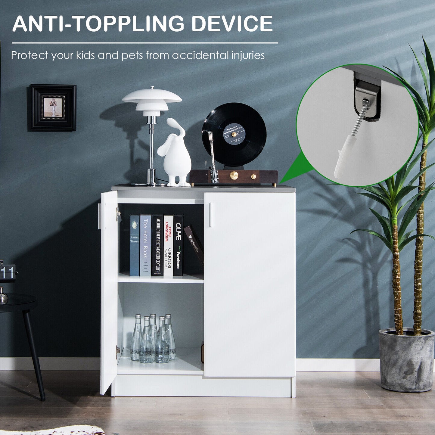 ● Safe and Convenient to Use: Equipped with an anti-toppling device this storage cabinet can be attached to the wall to prevent tipping over and protect your kids and pets from accidental injuries. There are 2 humanized door handles for convenient access. And the smooth surface will not scratch your skin during use.