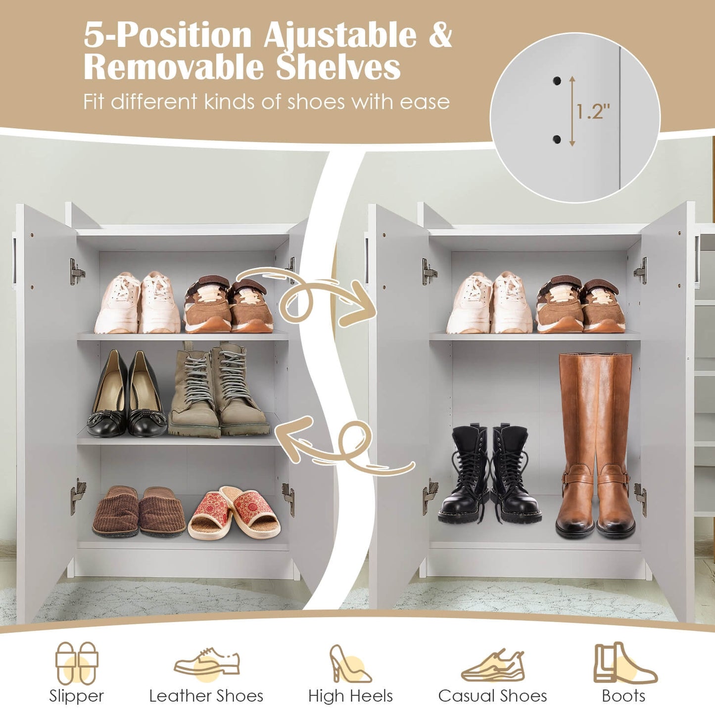 Freestanding Shoe Cabinet with 3-Postition Adjustable Shelves-White