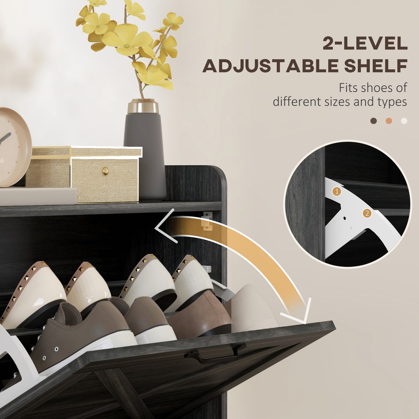 Slim Shoe Storage Cabinet, Farmhouse Shoe Cabinet with 2 Flip Drawers, Adjustable Shelves for 8 Pairs, Distressed Grey