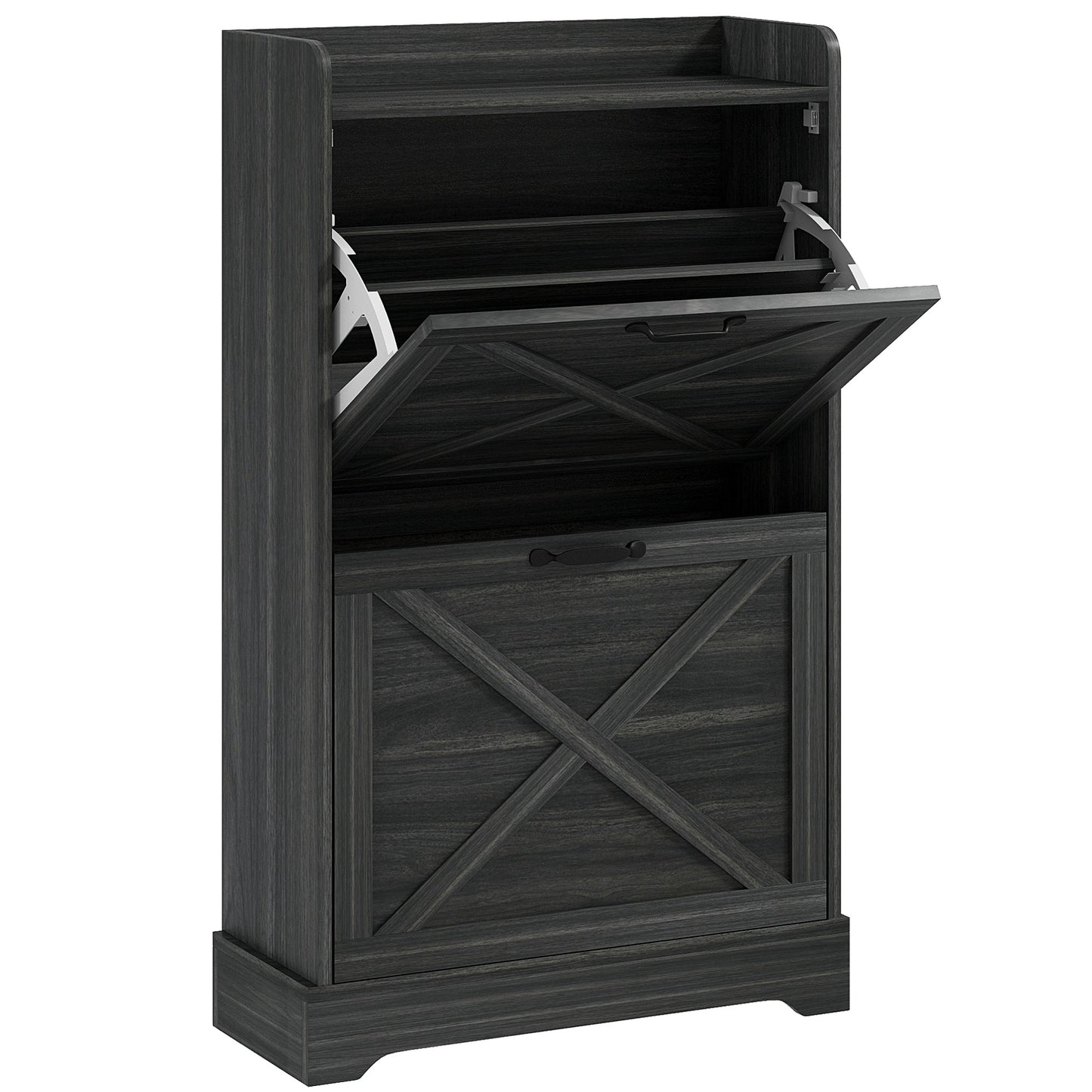 - Farmhouse Charm: The hidden shoe cabinet feature X-brace barn panels with distressed wood grain and black handles, adding a rustic touch to any hallway or bedroom.