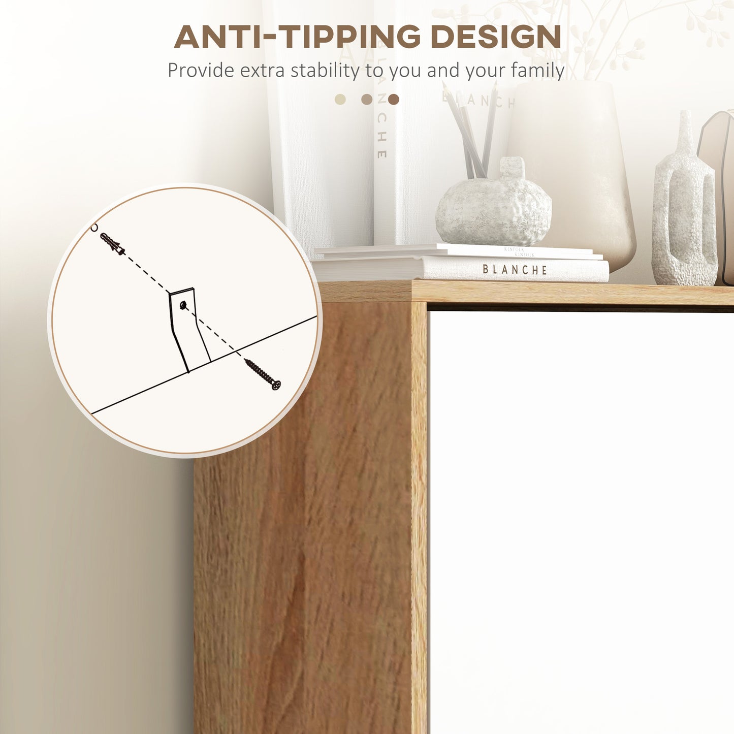 - Safety First: Equipped with anti-tipping straps, this shoe cabinet with doors can be securely attached to the wall, ensuring the safety of your family by preventing accidental tipping.